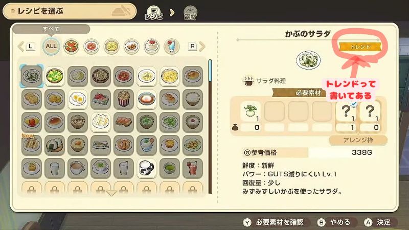 でも、料理レシピ画面に「トレンド」表示があることを発見!